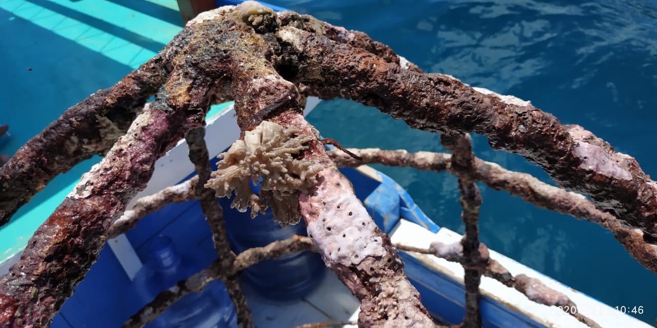 7 orang divers bekerja. 2 Pod tersebut diturunkan. Setelah itu, pembersihan alga pada Pinisi dilakukan dengan menggunakan sikat cuci dan sikat gigi agar coral dapat hinggap dan berkembang di Pinisi. Lalu, secara hati-hati, para divers memasang artifisial coral di Pinisi dan Pod. Terdapat 36 set coral yang terdiri dari soft coral (terumbu karang yang mudah patah) dan hard coral (terumbu karang yang mudah patah) berhasil dipasang.