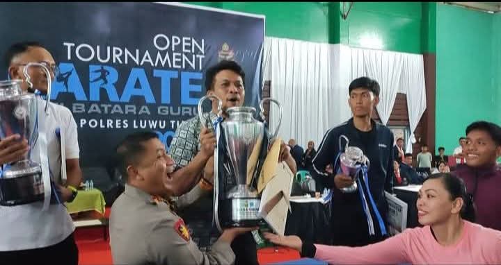 In that photo, the author represents INKAI South Sulawesi to receive the first Champion Trophy at the karate championship in Sorowako, East Luwu, South Sulawesi, Indonesia.