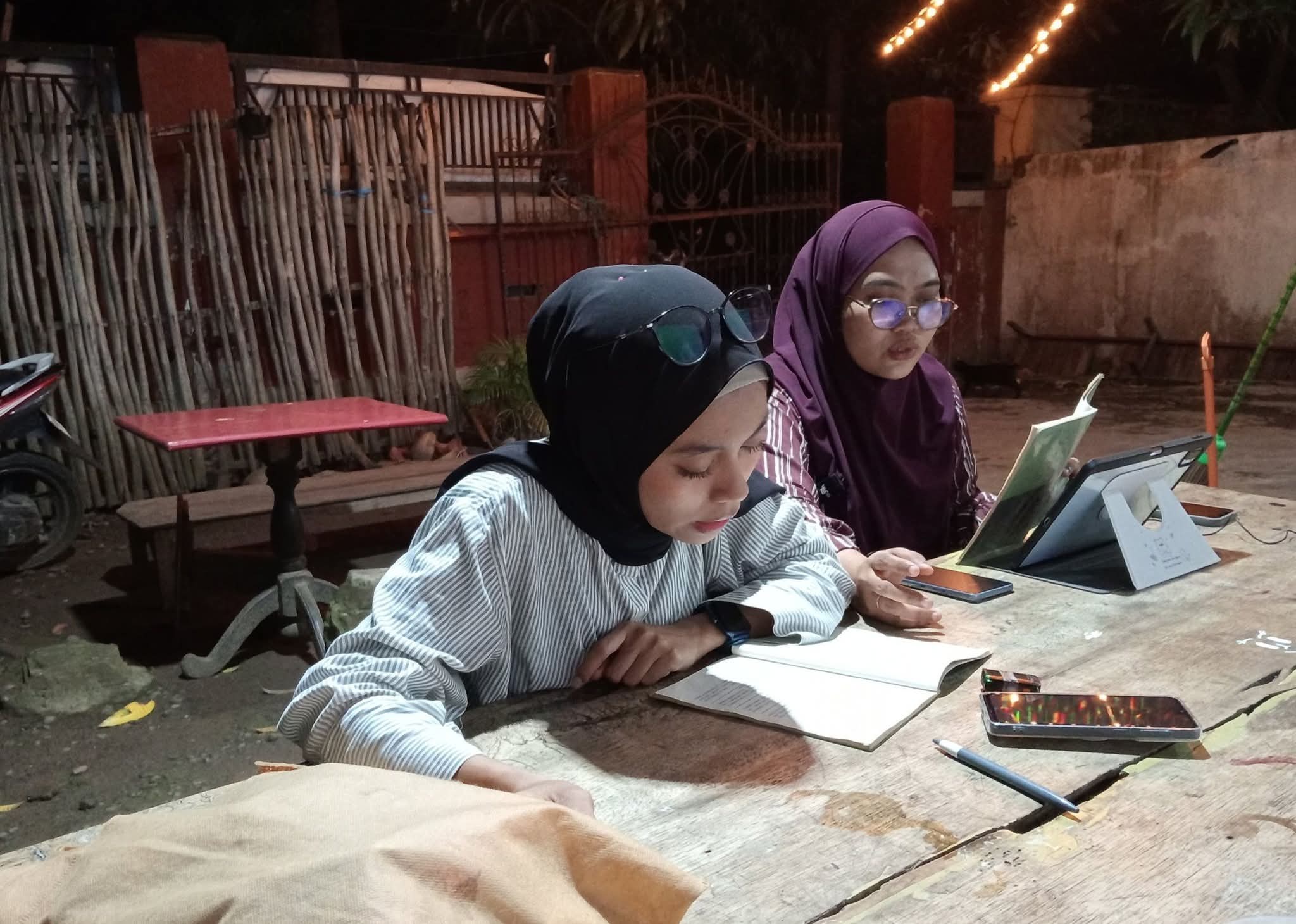 Khadijah, berkacamata, mahasiswa yang hampir tamat S 2 (strata dua) sedangkan Nilam telah tamat S 1 (strata satu). Mereka belajar Bahasa Inggris untuk mengejar beasiswa karena berencana untuk kuliah lagi. Target yang ingin dicapai adalah lulus TOEFL (Test of English as a Foreign Language), sebuah standar akademik yang telah lama diterapkan di universitas ternama di Indonesia. Sebelum mereka sepakat belajar, kami terlebih dahulu memberikan gambaran bahwa untuk sampai pada pembelajaran TOEFL itu butuh proses yang panjang. Soal-soalnya mencakup grammar, reading dan listening (tata bahasa, bacaan dan mendengarkan percakapan). Namanya juga tes standar internasional, kosa-kata yang dipakai adalah yang tidak lazim digunakan.